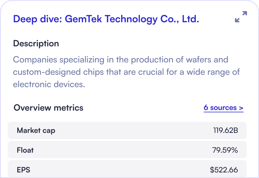 Quickly understand what a company does, relevant metrics, and trends. Find insights by instantly pulling up relevant sections of company documents. Gain an understanding of the financials.